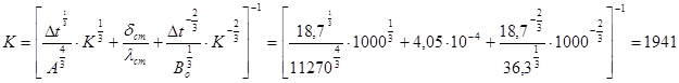 С = 0,943 (вертикальный теплообменник); Ao = 13·103.