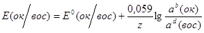 После подстановки значений R, F, T=298К и переходе к десятичным логарифмам, уравнение Нернста примет вид: