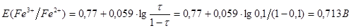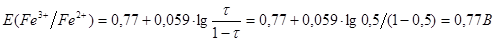 В ТЭ расчет редокс-потенциала проводим по формуле: