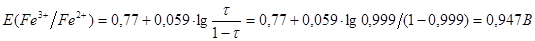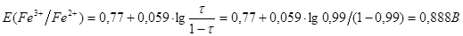 Расчет редокс-потенциала после ТЭ ведем по потенциалу пары