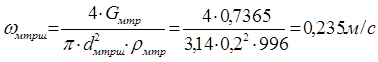 ω ш=4∙Gтр/(3,14∙ ρтр∙d трш2)= 4∙ 5/(3,14∙ 1023∙(0,15)2)= 0,0,277 м/с. (4.14)