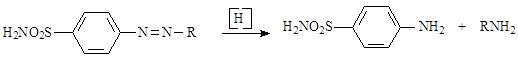 Вскоре, однако, было установлено, что пронтозилы и сходные по структуре сульфаниламидные азокрасители не являются непосредственно противострептококковыми средствами и что проявлению химиотерапевтической активности таких красителей предшествует восстановление их в организме в сульфаниламиды:
