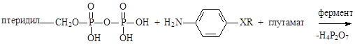 Механизм антимикробного действия сульфаниламидных препаратов определяется не только конкурентными взаимоотношениями между сульфаниламидами и парааминобензойной кислотой. Сульфаниламиды препятствуют синтезу дигидрофолиевой кислоты в микроорганизме из глютаминовой и парааминобензойной кислот. Белковые вещества (гной, мертвые ткани), содержащие большое количество ПАБК, а также некоторые лекарственные препараты, в молекулу которых входит остаток парааминобензойной кислоты (новокаин, анестезин), являются ингибиторами активности сульфаниламидов. В то же время присутствие мочевины повышает их бактериостатическую активность.