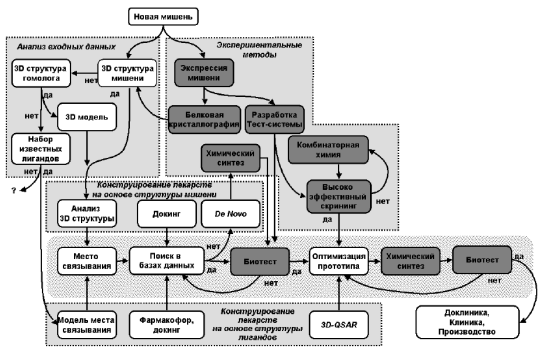 Рисунок 1.2 Общая схема стратегии компьютерного конструирования лекарств.