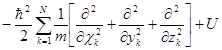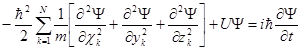 где Ψ(x, y, z, t) – волновая функция совокупности координат системы частиц и времени, U – оператор потенциальной энергии. Суммирование производится по всем частицам.