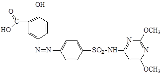 Салазодиметоксин — Salazodimethoxinum. 5-napa-/N-(2,4-диметоксипиримидинил-6) — сульфонамидо/-фенилазо-салициловая кислота.