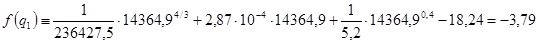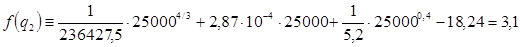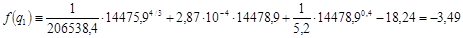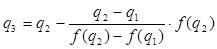 Третье, уточнённое значение q3, определим в точке пересечения с осью абсцисс хорды, проведённой из точки 1 в точку 2 на графике зависимости f(q) от q: