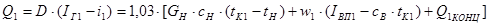 где 1,03 – коэффициент, учитывающий 3 % потерь в окружающую среду; сН, с1, с2 – теплоёмкости растворов соответственно исходного (начальной концентрации), в первом и во втором корпусе, кДж/(кг∙К); Q1конц, Q2конц, Q3конц – теплота концентрирования по корпусам, кВт; tН – температура кипения исходного раствора в первом корпусе, °С: