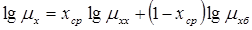 Вязкости жидкостей в верхней и нижней частях колонны: