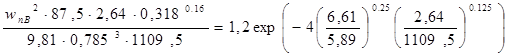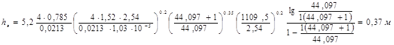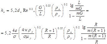 e – свободный объем насадки, м3/м3 (в ректификационных колоннах работающих при атмосферном давлении для разделения агрессивных жидкостей, а также в тех случаях, когда не требуется частая чистка аппарата, обычно применяют керамические кольца Рашига. Для данного случая примем насадку из керамических колец Рашига размером 50´50´50 мм. Удельная поверхность насадки 87,5 м2/м3, свободный объем насадки 0,785 м3/м3, насыпная плотность 530 кг/м3).
