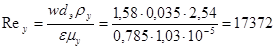Критерий Рейнольдса для газа в верхней и нижней частях колонны соответственно: