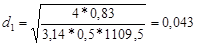 Диаметр штуцера для отвода пара из верхней части колонны: