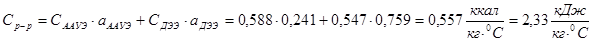 Удельная теплоемкость эфирного раствора рассчитывается по формуле:
