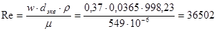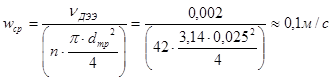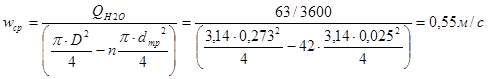 - скорость потока воды в межтрубном пространстве,