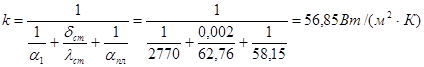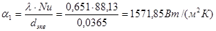 Отсюда находим коэффициент теплоотдачи от горячей воды к стенке α1: