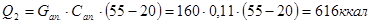 - тепловой эффект теплообменника, рассчитываем по упрощенной формуле: