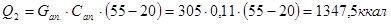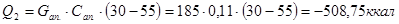 Тепло, которое пошло на охлаждение (с 550С до 300С):