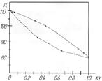 Рис. 3.21. Диаграмма равновесия между паром и жидкостью в системе бензол–толуол.