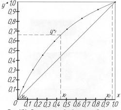 Полученные данные наносим в виде кривых в координатах t–x,y и y*–x (см. рис. 3.20, 3.21).