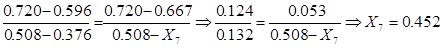 С 7-ой ступени стекает жидкость, близкая по составу к исходной смеси (ХF=0.44). Примем 7-ую ступень за ступень питания.