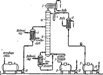 Рис. 1.5. Схема непрерывно действующей ректификационной установки: