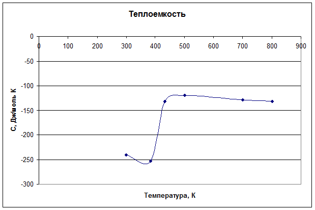 Расчет изменения теплоёмкости при температурах 300,388,432, 500, 700, 800 К: