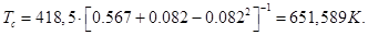 Поскольку для вещества отсутствуют экспериментальные значения критических параметров, используем параметры, полученные методом Лидерсена.