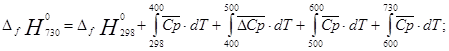 соответственно для 298К, 400К, 500К, 600К, 800К и путем интерполяции найдем