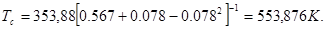 Поскольку для вещества отсутствуют экспериментальные значения критических параметров, используем параметры, полученные методом Лидерсена.