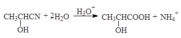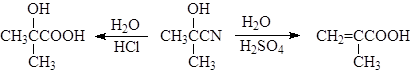 При гидролизе ацетонциангидрина в присутствии соляной кислоты образуется 2-гидрокси-2-метилпропановая кислота, а при его обработке концентрированной серной кислотой – метакриловая кислота: