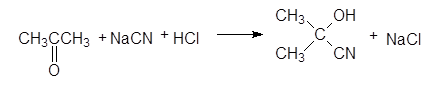 Альдегиды легко образуют циангидрины. Кетоны с разветвленной цепью углеродных атомов, а также высшие кетоны циангидринов не образуют. Реакцию обычно проводят, прибавляя минеральную кислоту к смеси карбонильного соединения и водного раствора цианида натрия.