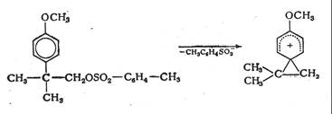 Если в карбкатионе в α-положении к катионному центру имеется С─Н-связь, то наряду с реакцией замещения возможен отрыв протона нуклеофилом с образованием продукта отщепления. Поэтому реакции отщепления всегда конкурируют с реакциями замещения: