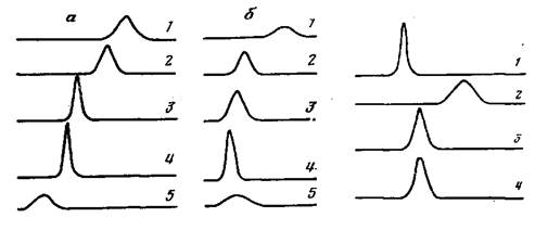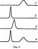Рис. 1. Седиментограммы смесей IlMANa - ПВП (а) и ПДМАЭМА - ПФ (б), а: ф= =0,45 (1) 0,33 (2), 0,2 (5), IIMANa (4), ПВП (5); рН 7,5; время 90 мин; [NaCl] = =0,05 моль/л; б: ф=0,33 (1), 0,2 (2), 0,1 (3),_ПДМАЭМА (4), ПФ (5); рН 4,0; время 60 мин; [NaClJ =0,1 моль/л. Мю пф=1,7-10 Мт пдмаэма-нс1=6,3-105; скорость вращения ротора 5,6-Ю4 об/мин; 20° Рис. 2. Седиментограммы НПЭК nMANa - ПВП, nMANa и их смеси: nMANa (1); НПЭК (ф=0,45) (2); смесь [(1) + (2)] (3); НПЭК (ср=0,23) (4). Условия те же, что на рис. 1, а