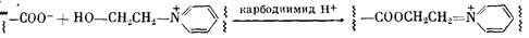 Важную информацию о механизме межмакромолекулярных реакций можно получить при изучении систем, содержащих водорастворимые «сшитые» НПЭК. Нами синтезированы модифицированные НПЭК*, в которых часть солевых межмакромолекулярных связей заменена на ковалентные, не способные в отличие от первых обратимо диссоциировать. НПЭК* приготавливали из nMANa и МПВП, 45% звеньев которого кватернизировали этиленбромгидрином, а остальные звенья затем исчерпывающе алкилировали бромистым этилом. При введении в растворы НПЭК nMANa — МПВП карбодиимида происходит конденсация групп — СОО- полиметакриловой кислоты и ОН-групп МПВП [19, 20]