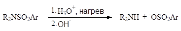 При нагревании сульфонамидов в водных растворах кислот они гидролизуютя до аминов: