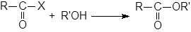 Для связывания образующегося НХ часто добавляют основания. В методе Шоттена-Баумана используется водный раствор щелочи, но часто применяется пиридин. Как R, так и R’ могут быть первичными, вторичными или третичными алкилами или арилами. В сложных случаях, особенно для стерически затрудненных кислот или третичных R’, вместо спирта можно брать алкоголят ион.