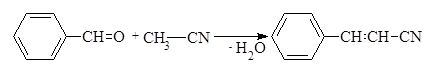 Ацетонитрил может конденсироваться с кетонами и ароматическими альдегидами в условиях межфазного катализа в присутствии концентрированного раствора гидроксида калия.
