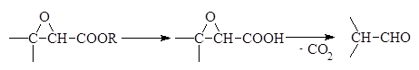 Полученные таким способом 2,3-эпоксиэфиры (глицидные эфиры) при омылении декарбоксилируются и перегруппировываются в альдегиды: