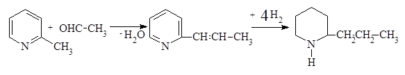 Иллюстрацией такого рода синтезов может служить получение кониина ‑ первого алкалоида, синтезированного Ладенбургом в 1886 г.