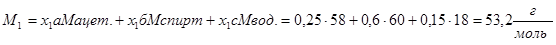в исходной смеси х1а = 25% (мольн), х1б = 60% (мольн)
