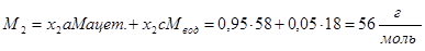 в дистилляте х2а = 95% (мольн), х2б = 0% (мольн)