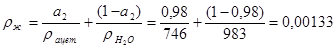 Плотность воды при температуре t0 = 830C равна rвод = 972 кг/м3 (см. [1] стр.512, табл. XXXIX), ацетона - 719 кг/м3, спирта - 735 кг/м3.