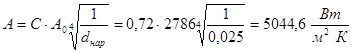 где С - коэффициент расположения трубок, равный при горизонтальном расположении 0,72,
