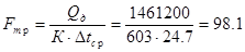Согласно [4], стр.415, принимаем двухходовой теплообменник со следующими параметрами: d = 25´2 мм; z = 6; n = 266; F = 100 м2; lтр =5,0 м.