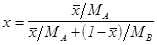 Все расчеты в данном случае ведутся для легкокипящего компонента, а значит х есть концентрация бензола. Для дальнейших расчетов необходимо пересчитать составы фаз из массовых в мольные по соотношению :