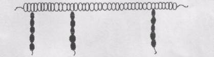 Молекула привитого сополимера представляет собой основную цепь высокого молекулярного веса, вдоль которой через некоторые интервалы расположены боковые цепи второго полимера:
