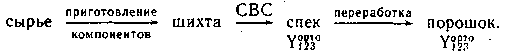 Исследования самораспространяющегося высокотемпературного синтеза керамических ВТСП привели к разработке (1988 г.) в Институте структурной макрокинетики СВС-технологии порошков орторомбического Y123. Созданы две технологические установки: лабораторная (с производительностью 1 т/г) и опытная (до 10 т/г.). Обе они работают по следующей схеме:
