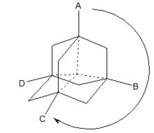 Молекулы адамантана, содержащие четыре разных заместителя при узловых атомах углерода, являются хиральными и оптически активными. При этом центр хиральности, как и у оптически активных бифенилов, не приходится на какой-либо конкретный атом. R,S-номенклатура в этом случае может применяться так же легко.