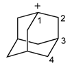 1-адамантил-катион обладает высокой стабильностью по сравнению с другими третичными карбокатионами. Он легко образуется в результате взаимодействия 1-фтор-адамантана с SbF5.