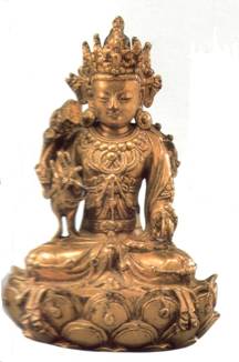 Рис. 9. Позолоченная бронзовая статуя сидящего бодхисаттвы Махастханапрапты, в изображении которого чувствуется влияние ламаистского стиля (XIII-XIV в).